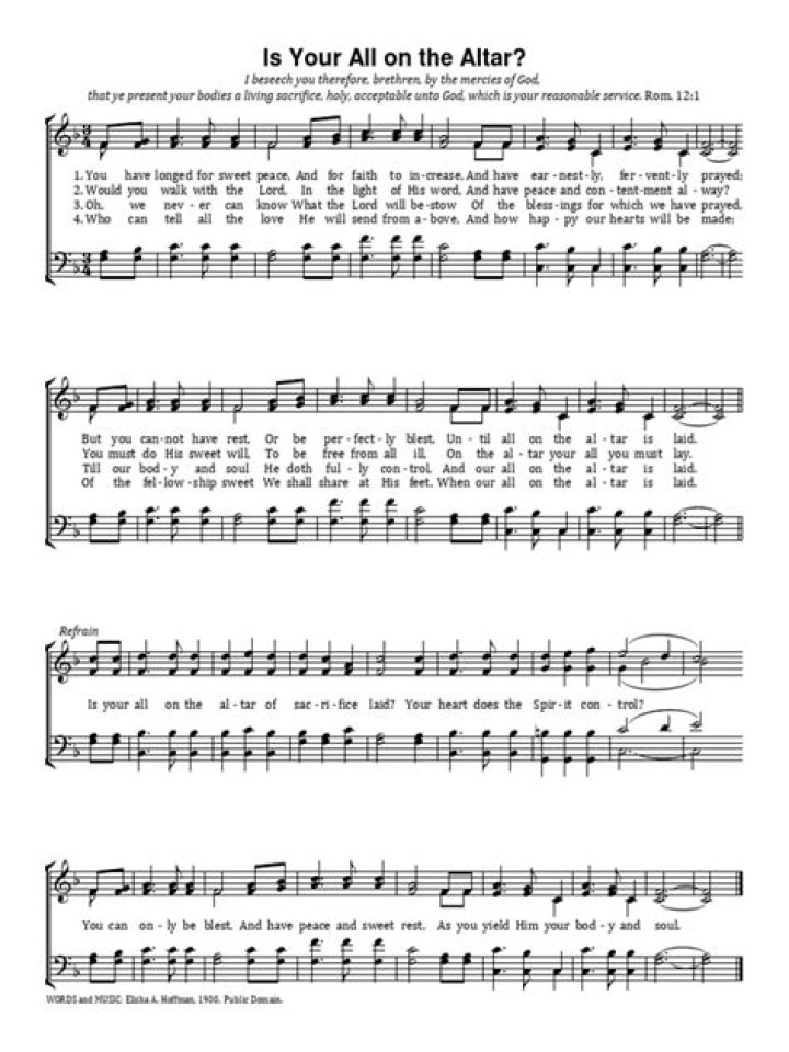 - Altar of Sacrifice: The altar is often associated with sacrifice and devotion. The phrase "is your all on the altar" implies that the lyrics are offered as a sacrifice, a complete dedication to a higher purpose or belief.