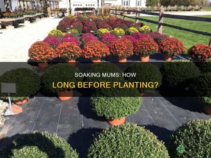 The length of time that mums should be soaked in water before planting depends on several factors, including the size of the plant, the condition of the roots, and the time of year. As a general rule, it is recommended to soak mums for at least 30 minutes, but longer soaking periods may be beneficial for larger plants or plants with damaged roots.
