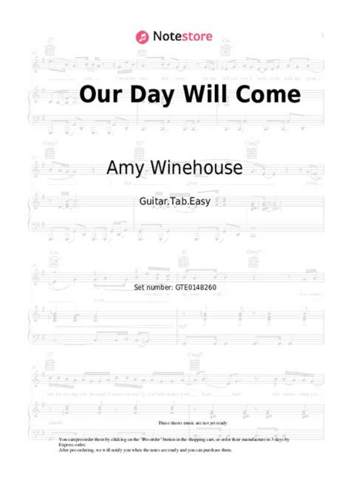 The tab's simplicity has made it a favorite among beginner guitarists, as it allows them to practice basic chords and strumming patterns. Despite its simplicity, the "Our Day Will Come" tab has stood the test of time, remaining a fundamental element in the repertoire of many musicians.