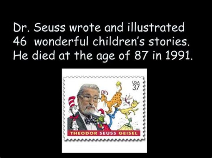 Dr. Seuss, whose real name was Theodor Seuss Geisel, was an American author and illustrator known for his children's books. He wrote over 60 books, including beloved classics like "The Cat in the Hat," "Green Eggs and Ham," and "The Lorax." Dr. Seuss died on September 24, 1991, at the age of 87. The cause of his death was complications from throat cancer.