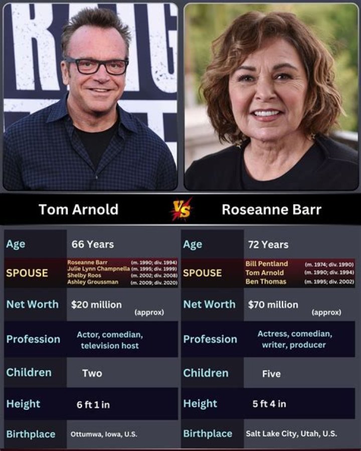 Roseanne Barr's second marriage was to Tom Arnold in 1990. They divorced in 1994. This marriage was a highly publicized event, as both Barr and Arnold were well-known comedians at the time. The couple's relationship was often tumultuous, and they were frequently in the news for their public feuds. However, they also had a lot of love and respect for each other, and they remained friends after their divorce.